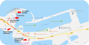Übersicht der Parkhäuser am Fähr-Hafen Lauwersoog: